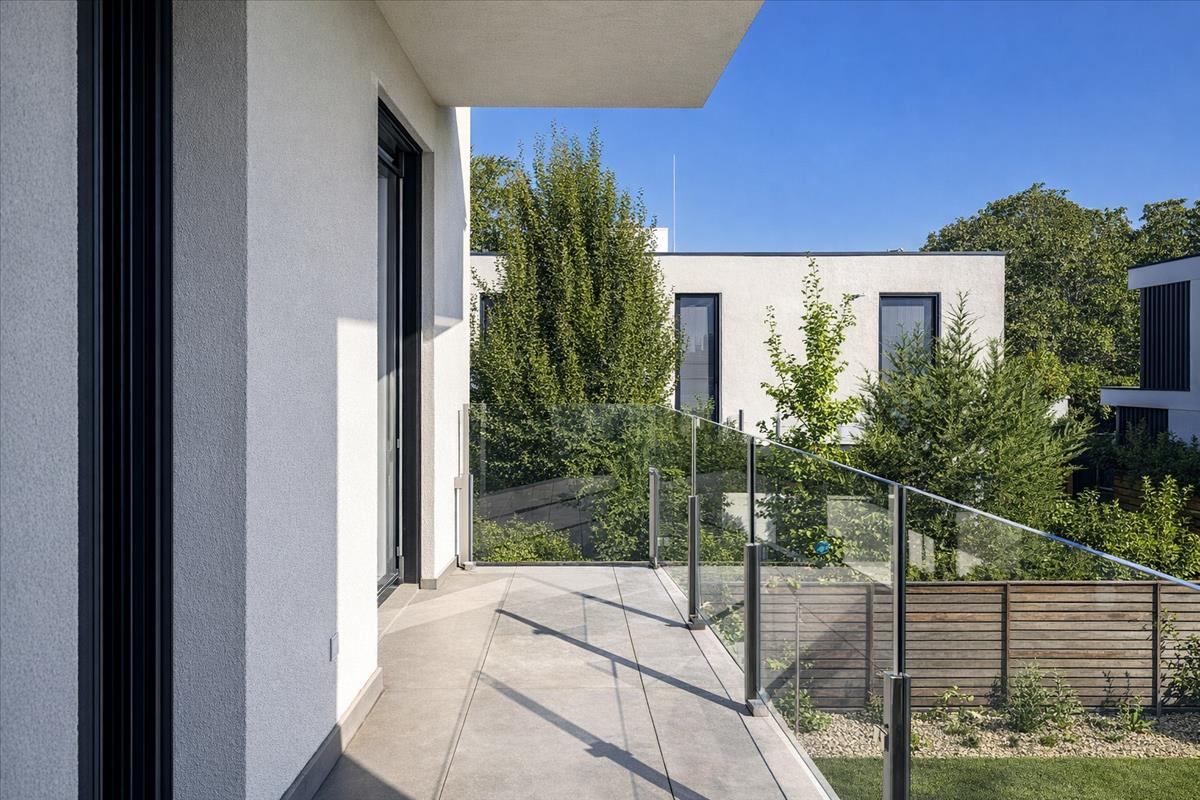 -10 m2-es erkély, kertre néző kilátással
