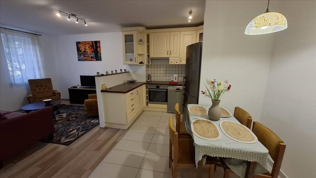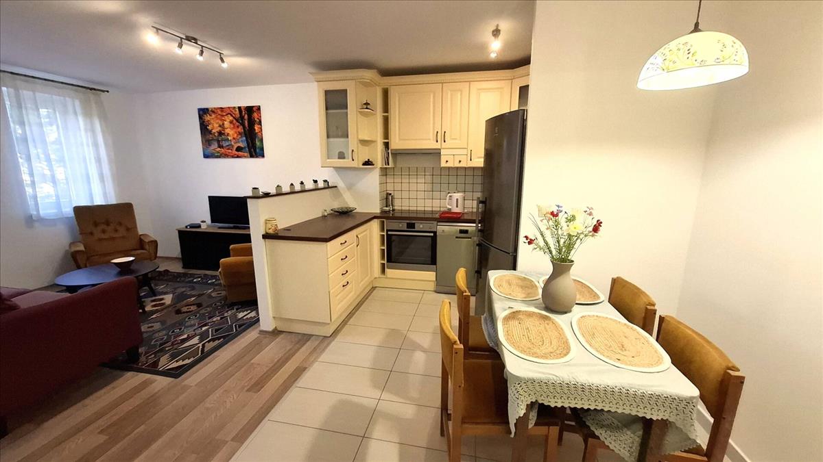 A lakás tágas és világos, praktikus elrendezésű, teljesen bútorozott, valamint gépekkel felszerelt konyhával rendelkezik, így azonnal költözhető. a mindennapi komfortot klímaberendezés, alacsony rezsiköltség, valamint a csendes, udvarra néző ablakok biztosítják.
