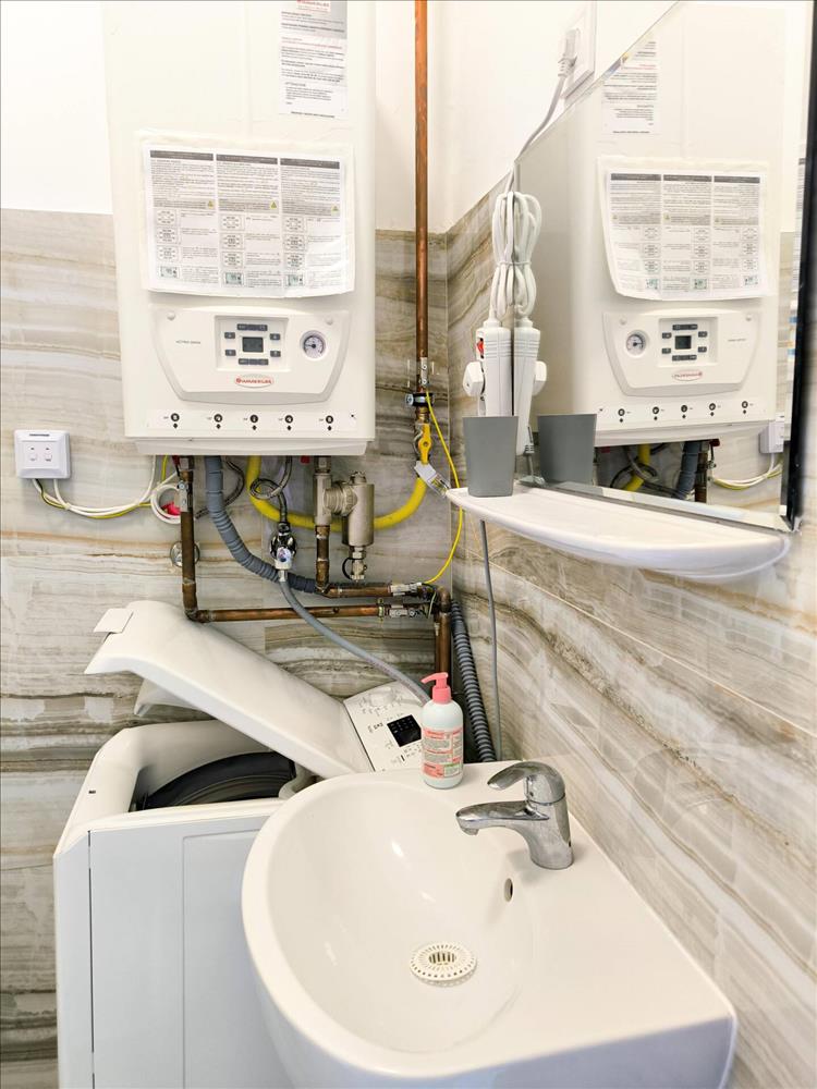 A használati melegvíz előállításáról és a fűtésről (padlófűtés) kombi gázkazán gondoskodik.