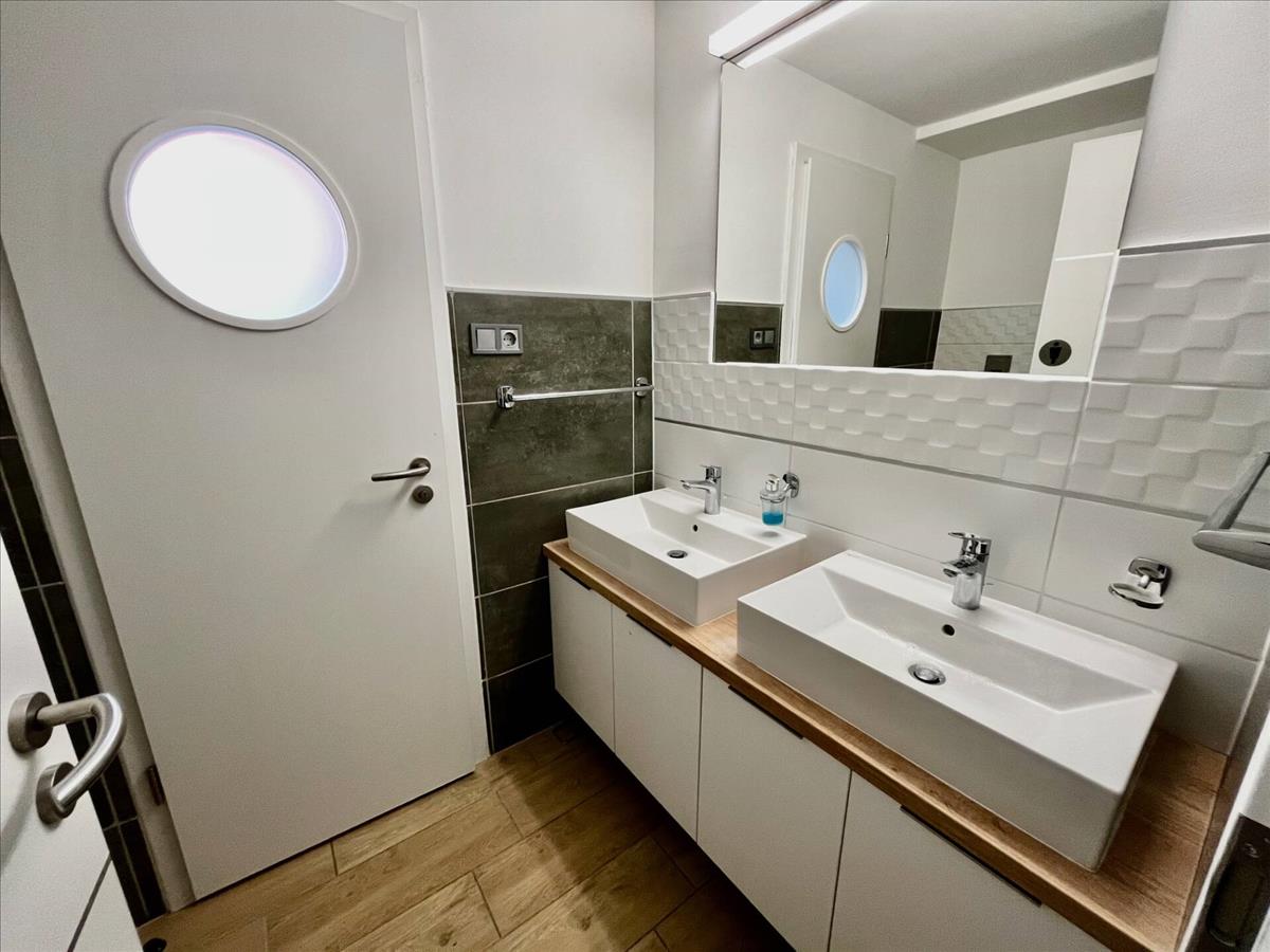 Amennyiben lakásként szeretné valaki kivenni, úgy bútorokkal berendezik, a nappaliból nyíló fürdőszoba pedig most készül, ahol zuhanyzó lesz WC-vel. a konyha gépesített: hűtő, mikró, szagelszívó, főzőlap, mosogatógép és van beépített vízszűrő berendezés. a teraszra igény szerint szaunát is beépítenek, külön feltételek mellett.
