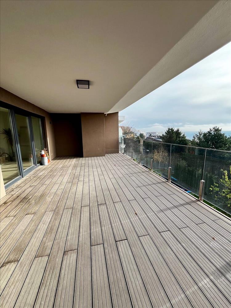 A 35 nm-s teraszról gyönyörű kilátás nyílik nemcsak a városra, hanem a zárt közös udvarra is, amely parkosított, kivilágított pálmafákkal tarkított, valamint úszómedencés.