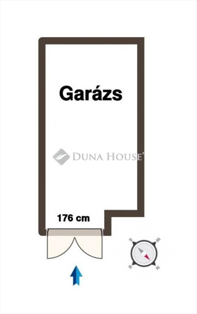 A garázs 15 m2-es, bejárata 176 cm széles és 215 cm magas, így egy átlagos méretű autó kényelmesen befér.