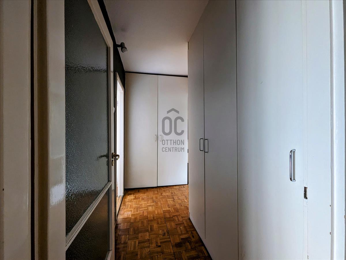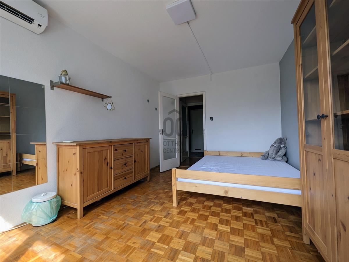 66 nm-es, 4. emeleti, kiváló elosztású, világos, tágas lakás. Nappali loggiaval, két hálószoba, fürdőszoba, wc, ablakos konyha kamrával, plusz egy gardrób helyiség, található a lakásban. Az összes helyiség külön, az előszobából, közlekedőből megközelíthető. a lakás bútorozott. Távfűtés biztosítja a meleget a lakásban, klíma berendezés pedig a hűtését. a szobákban parketta, a többi helyiségben pedig járólap található.