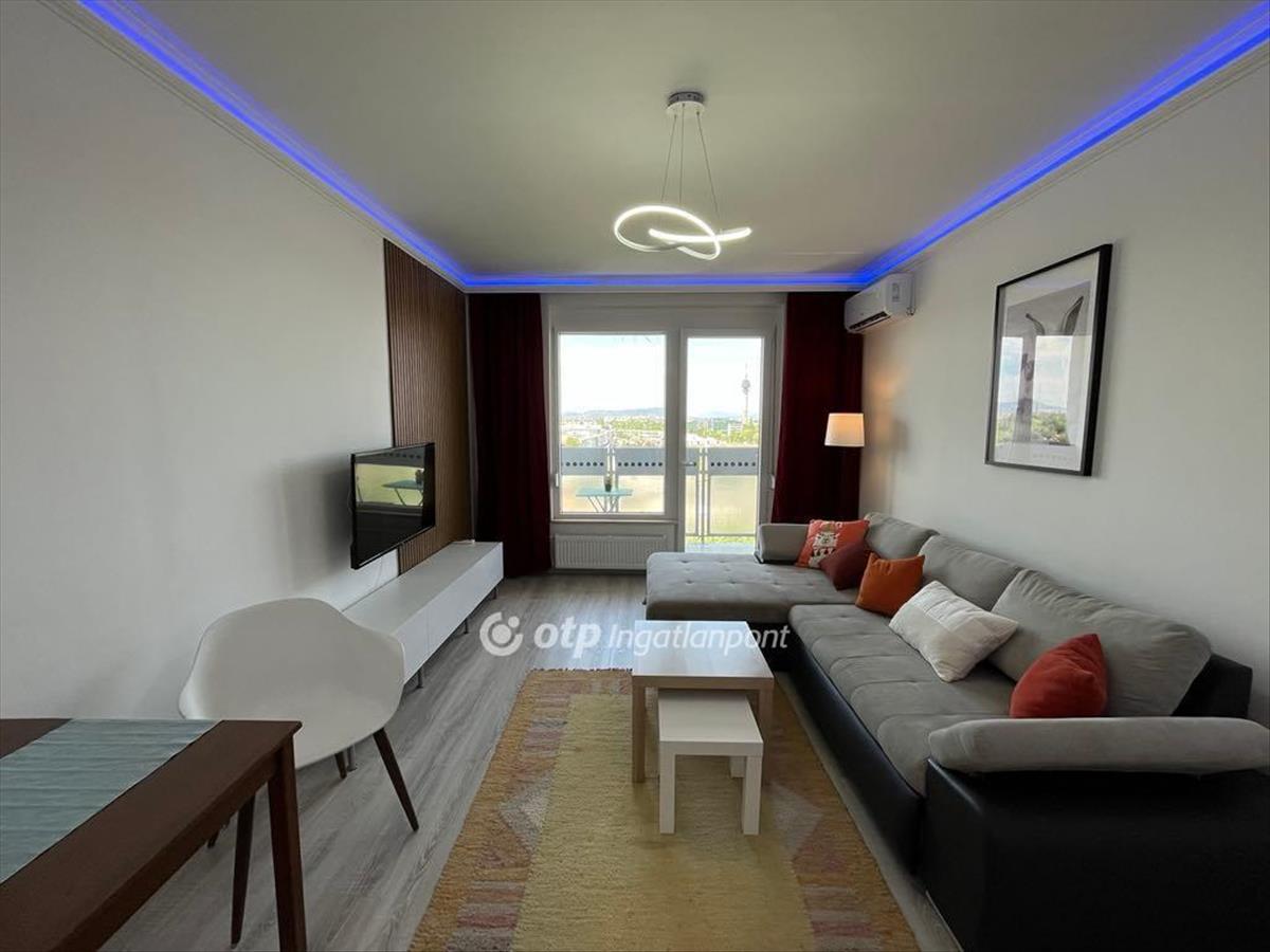 A lakás ízlésesen berendezett, klímával felszerelt. a 4 nm-es teraszról gyönyörű kilátás nyílik a városra és a budai hegyekre.