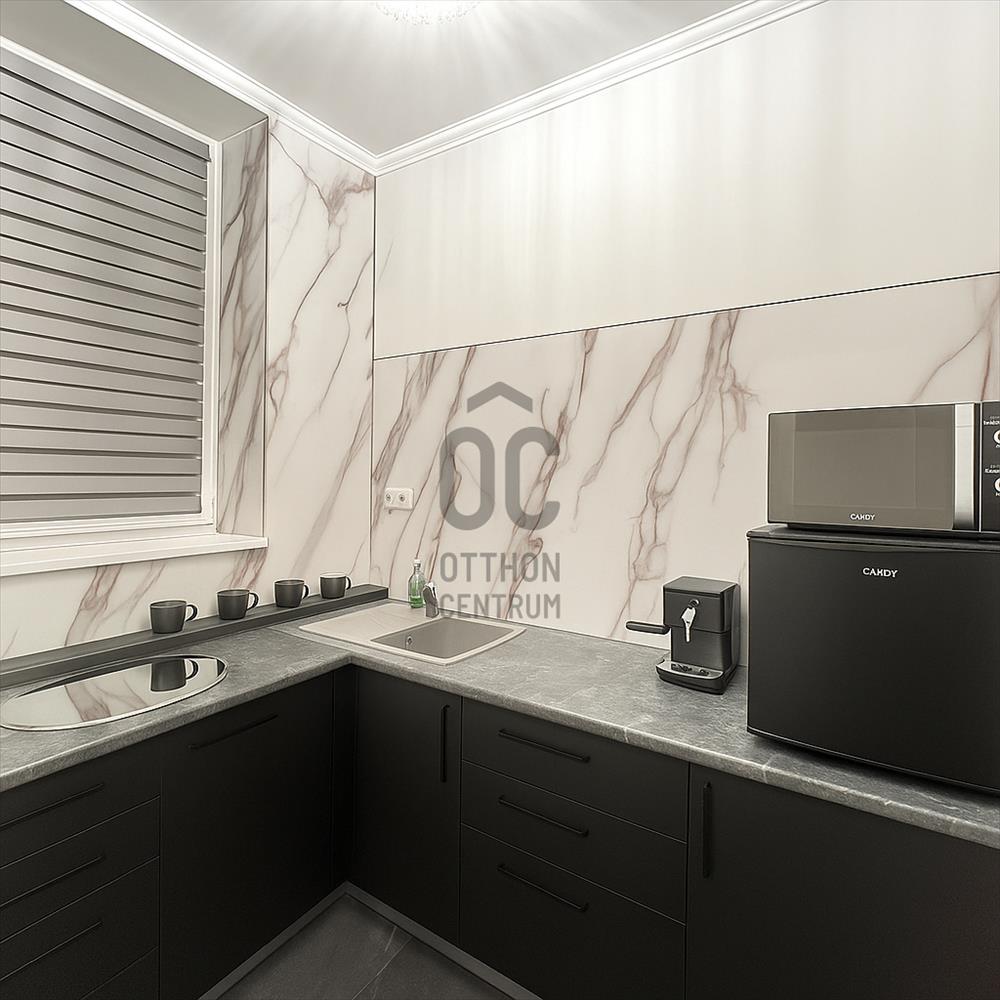 - Prémium minőségű, gépesített konyha (mikró, hűtő, kávégép stb. )