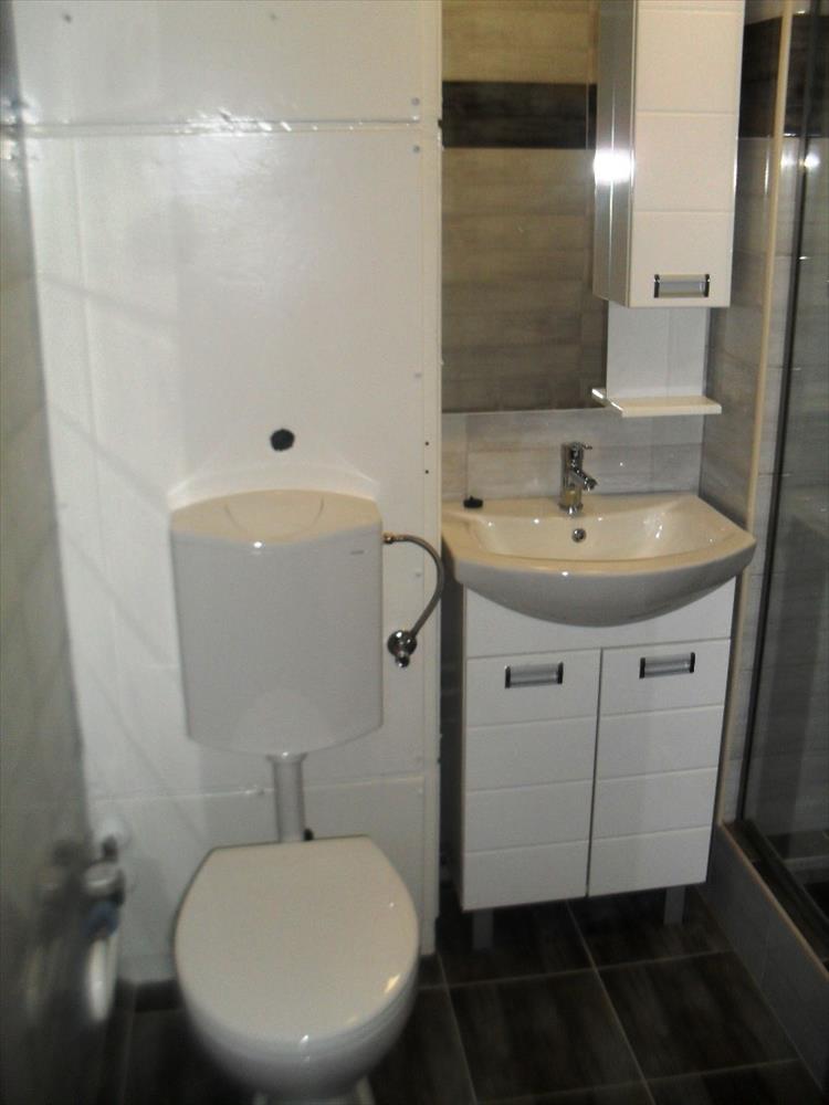- a fürdőszoba zuhanykabinos kivitelezésű, a wc is itt található