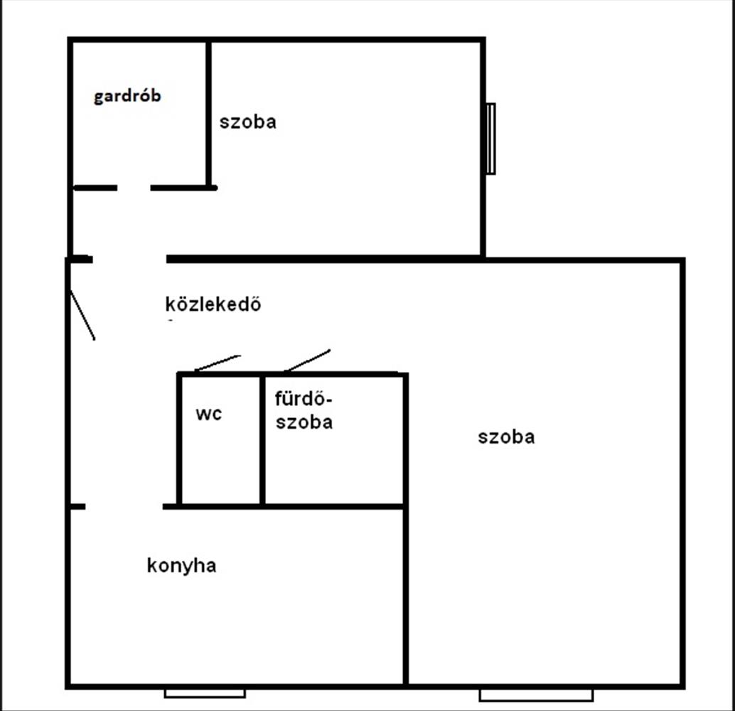 Elrendezése: nagyszoba, kisszoba, gardrób, közlekedő, konyha, fürdőszoba, wc