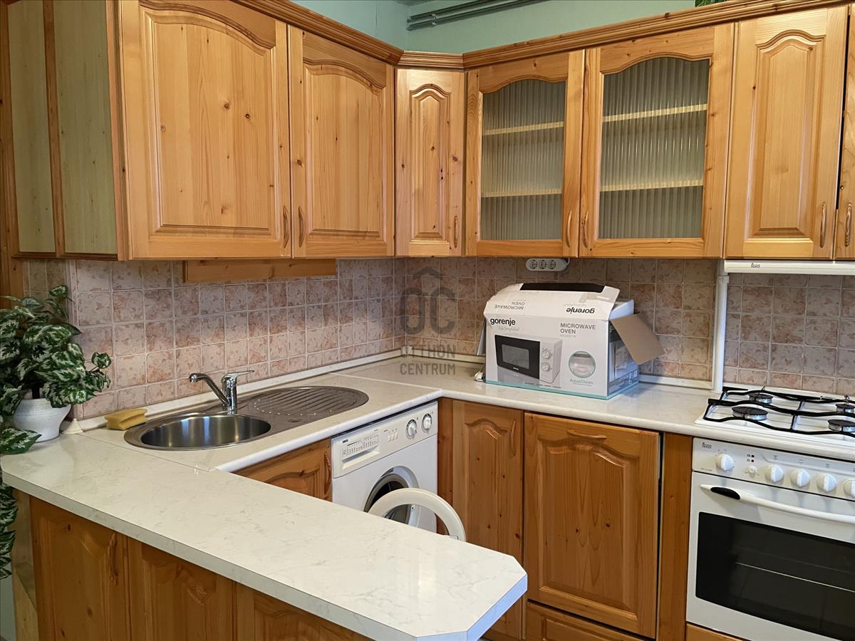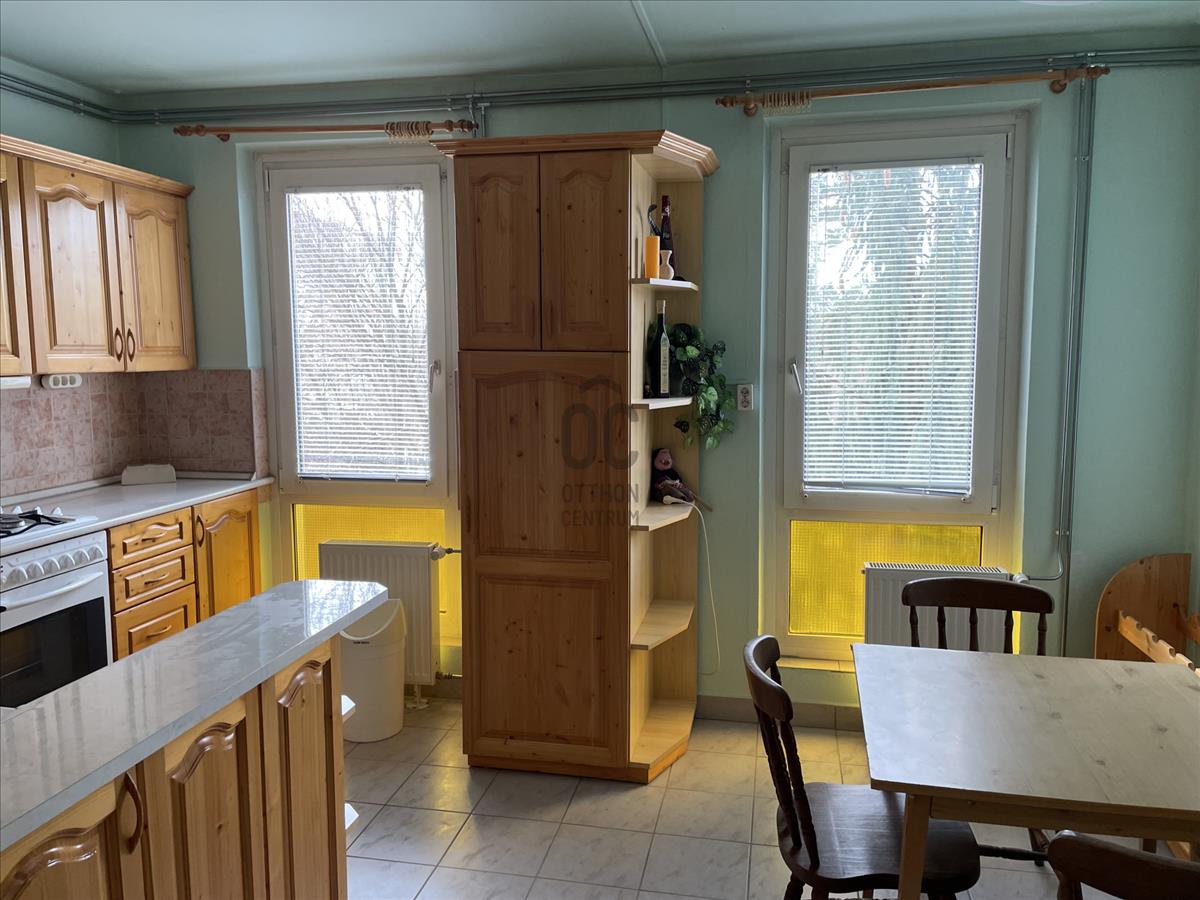 Konyha és étkező tágas, konyhája teljesen új gépekkel felszerelt, minőségi fából készült. Erkélye redőnnyel ellátott. Az előszobában tágas gardróbszekrény kapott helyet.