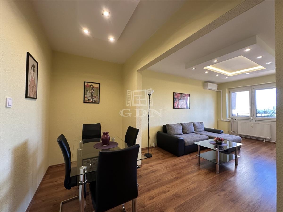 Bl-001516. Palotavárosban igényesen felújított 3 szoba-hallos, ötödik emeleti modern bútorokkal és gépekkel felszerelt (mosógép, kombi hűtő, tűzhely), klimatizált, erkélyes lakás kiadó.