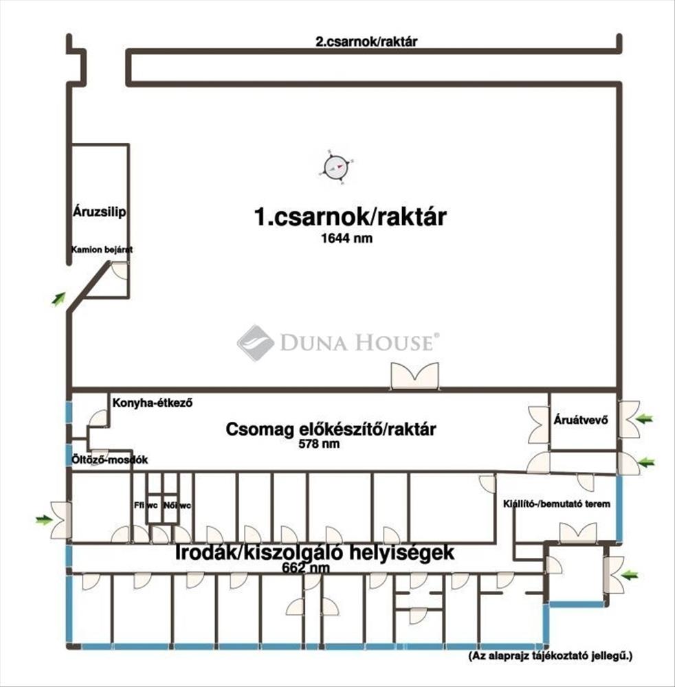 1. Irodarész: berendezett irodákkal, öltözővel, mosdókkal, kiszolgáló helyiségekkel: 750 nm, 3, 0-4, 5 m belmagassággal,