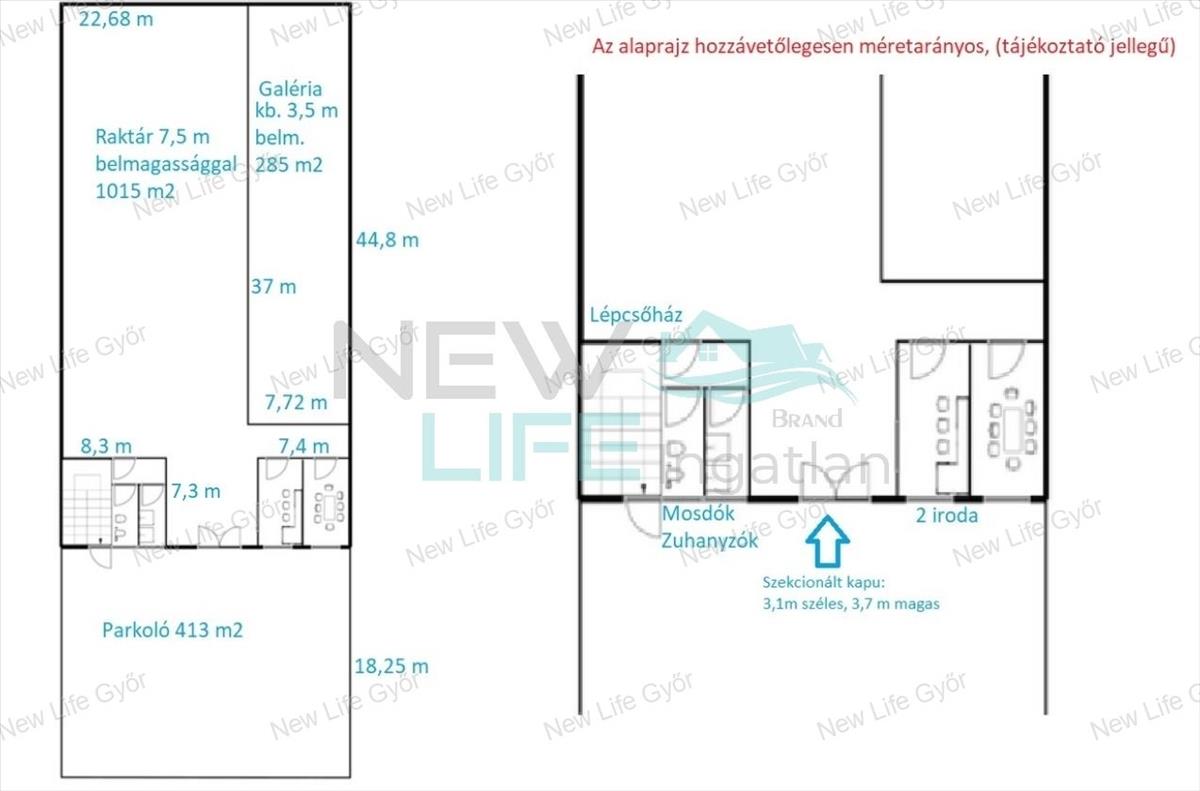Győr Szabadhegy városrészében kiadó ipari, kereskedelmi, raktározási, szolgáltatói célra kiválóan alkalmas 1015 m2-es csarnoképület 7, 5 méteres belmagassággal (+ 285 m2 galéria 3, 5 m magassággal).Elhelyezkedése kiváló, egyaránt könnyen megközelíthető több főút és az autópálya is.