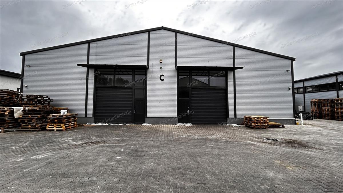 500 m²-es csarnok: Tartalmaz egy 100 m²-es fűthető irodahelyiséget szociális blokkokkal, fűtés elektromos panellel biztosítva. a csarnok nagy teherbírású ipari padlóval rendelkezik, és ipari kamerával és éjszakai világítással felszerelt. a csarnok belmagassága 5-6 m, a maximális tárolási magasság közel 5 m. Bérleti díj: 500. 000 Ft/hó + rezsi + 2 havi Kaució