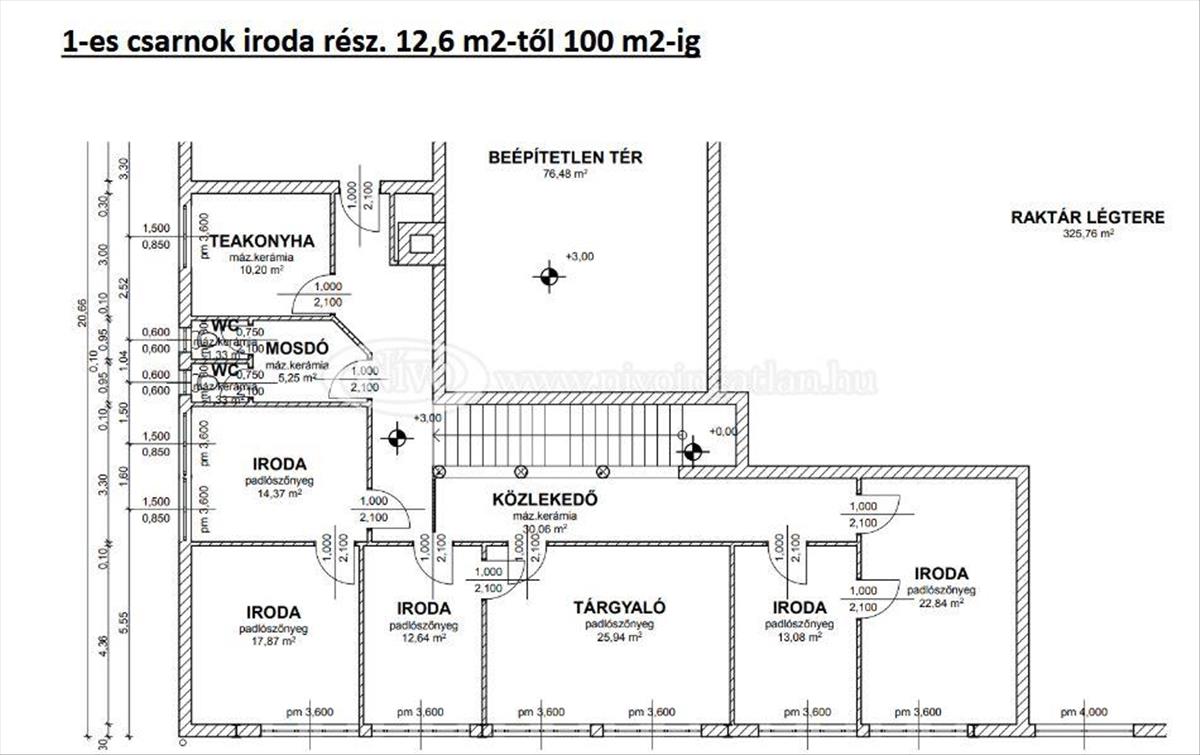 - Bérleti díj: 1. 500 Ft/m2 + áfa +rezsi/hó.