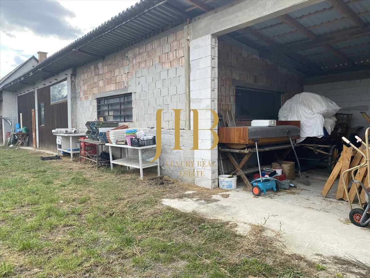 Az épület 80 m² zárt, száraz raktártér és 25 m² fedett, de nyitott részt kínál (kapu nélkül).