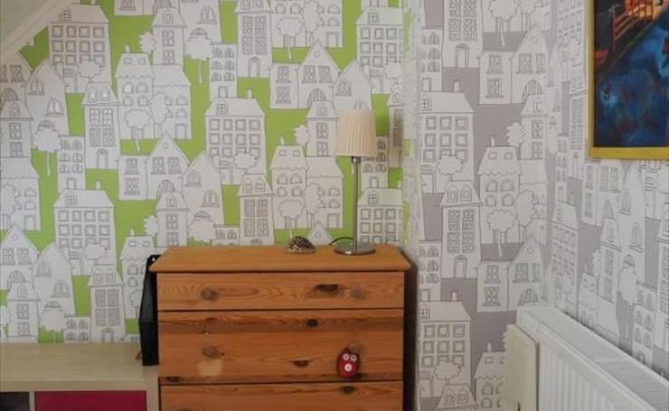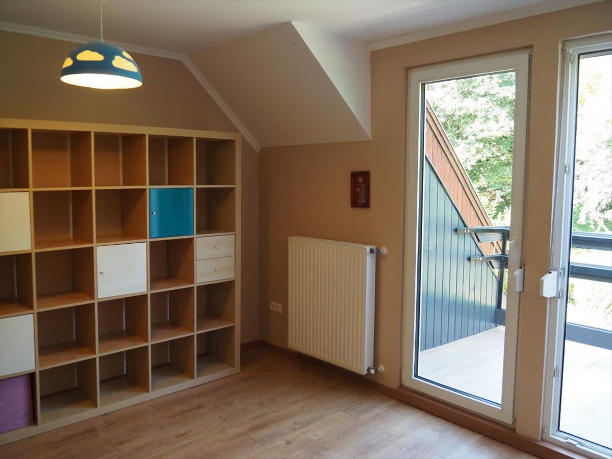 The house is located in a quiet, green residential area with access to a large shared garden with old-growth trees, perfect for relaxation.