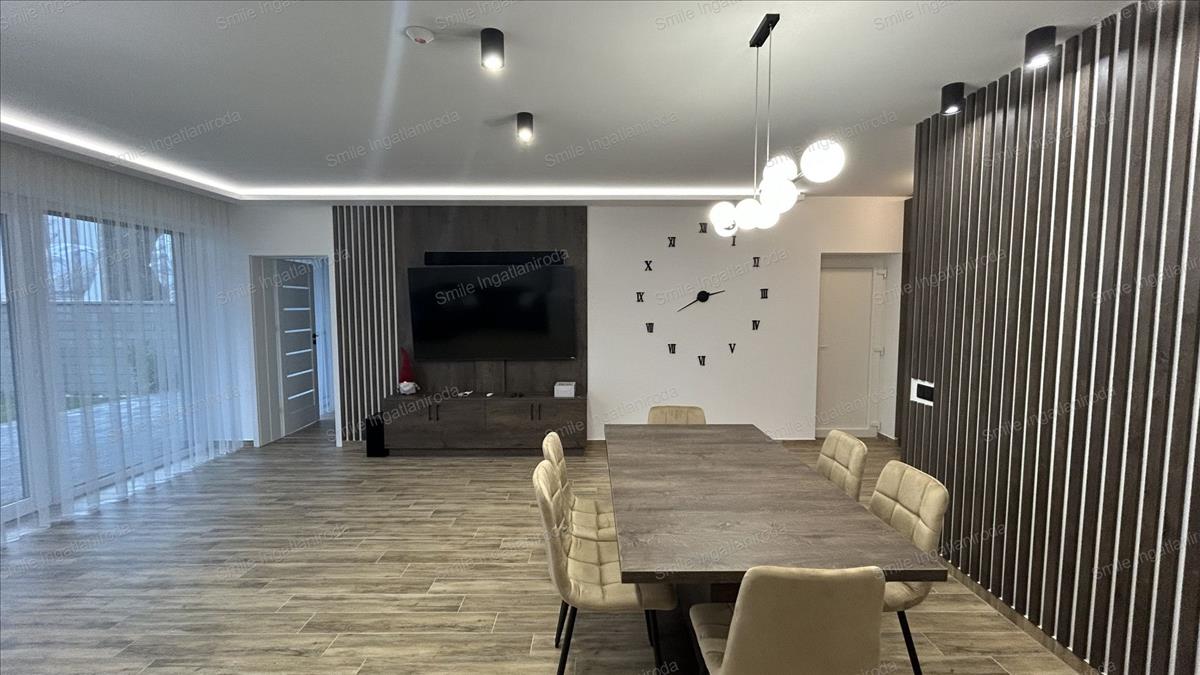 Nyíregyháza Sóstógyógyfürdő zöld, élményfürdő közeli részén kiadó egy modern, 2 szintes, duplakomfortos sorházi lakás, 161 m² nettó, 113, 86 m² lakóterülettel. Az ingatlan 4 szobával, amerikai konyhás nappalival, külön étkezővel, 2 fürdőszobával (zuhany, wc), padlófűtéssel, radiátorral és energiatakarékos hőszivattyúval, 10 cm-es szigeteléssel garantálja az alacsony rezsit és a komfortot. Fedett terasz, privát kert, zárt udvar, garázs (17, 4 m²) és további fedett beállók állnak rendelkezésre. Tágas, világos belső terek, déli tájolás, minőségi burkolatok, modern nyílászárók. Ideális családoknak, pároknak vagy akár home office-ban dolgozóknak is!