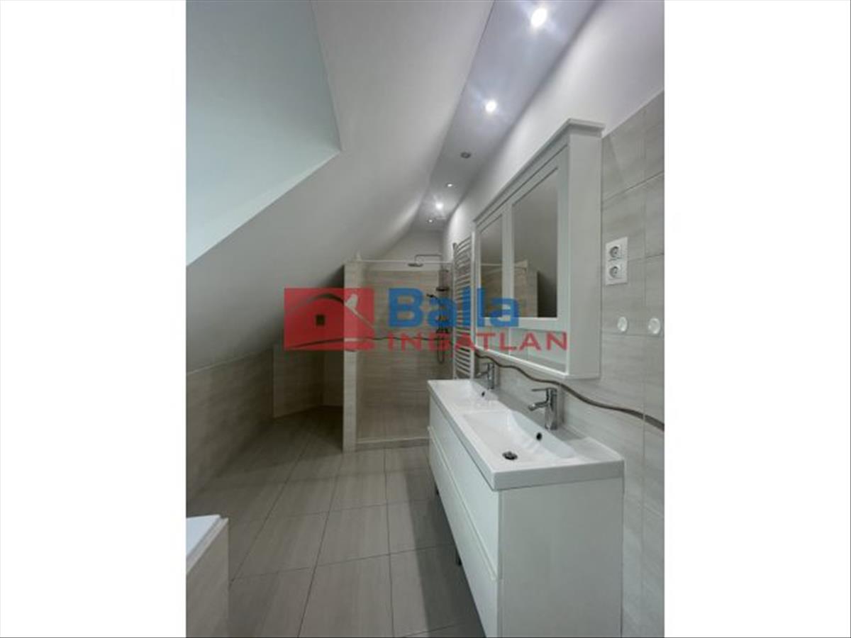 Az emeleti tágas fürdőszoba beépített káddal és dupla mosdóval rendelkezik, valamint a nagy tér lehetőséget biztosított, egy zuhanyzó kialakítására is. a helyiség természetes szellőztetését ablakok biztosítják. Az emeleti toalett külön helyiségben kapott helyet.