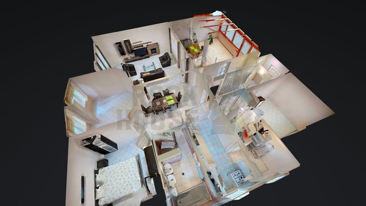 Helyiségek: nappali, három hálószoba, konyha-étkező, közlekedő, fürdőszoba, külön wc.