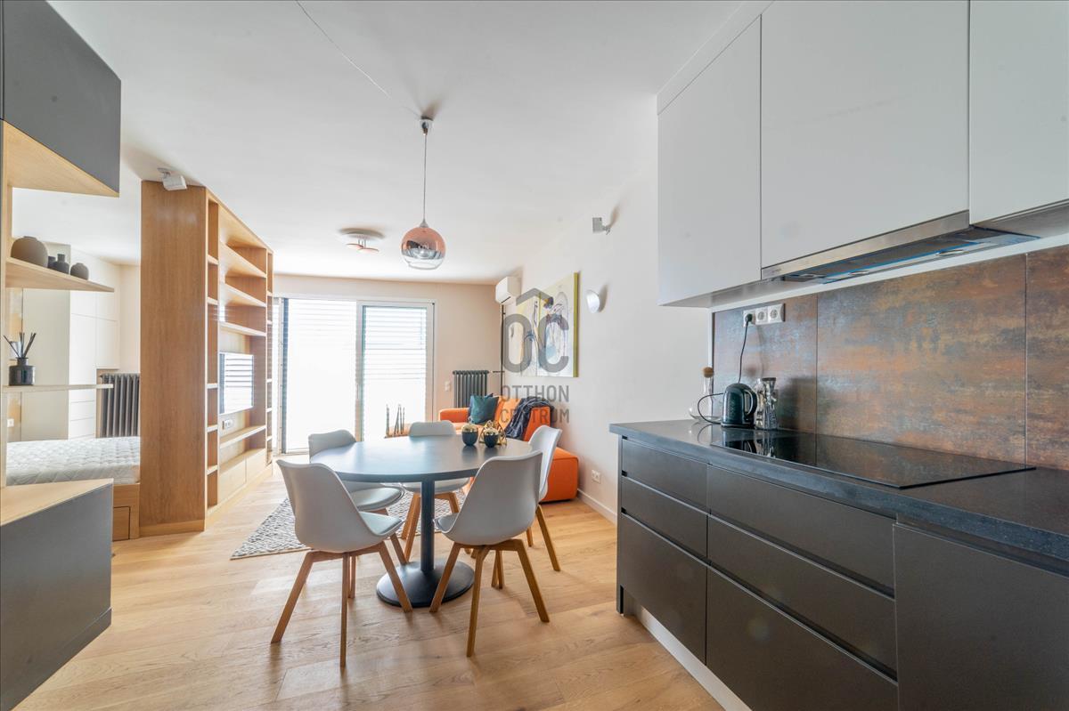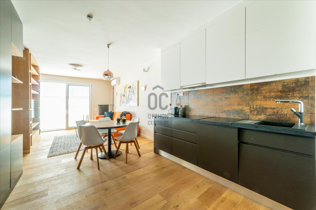 A lakás 2017-ben teljes körű felújításon esett át, mely során a modern elegancia és a praktikum tökéletes egyensúlya valósult meg: