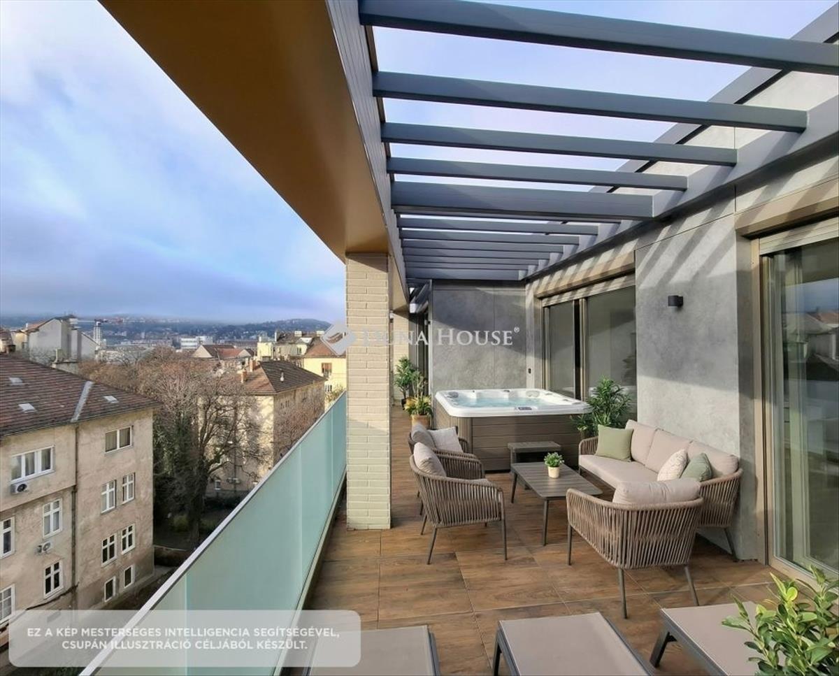 KIADÓ panorámás penthouse lakás a naphegyen terasszal, luxus kivitelben, TEREMGARÁZZSAL