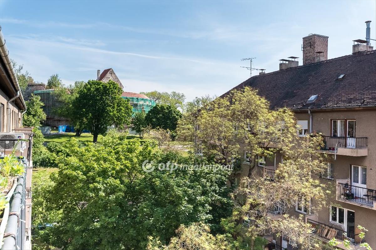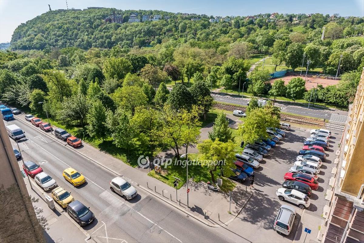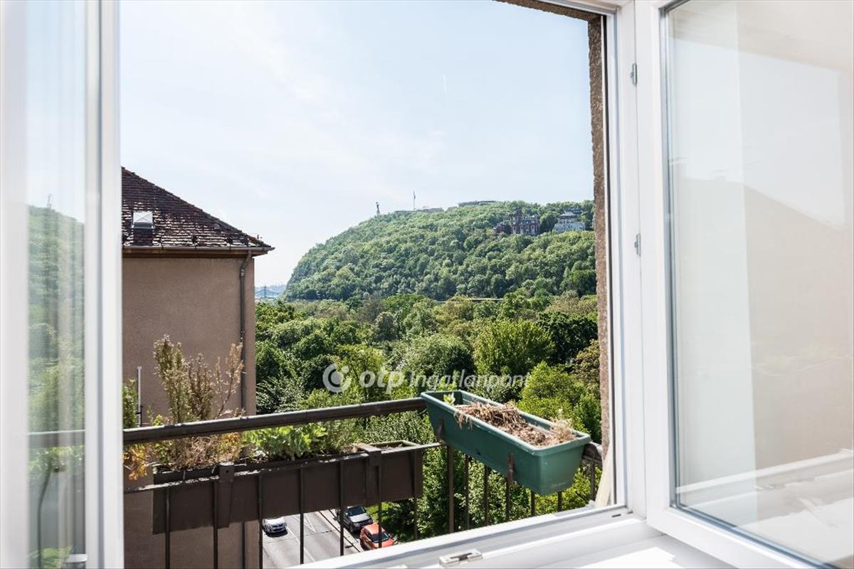A lakás egy jó állapotú, téglaépítésű, lifttel rendelkező társasház 6. emeletén található, felette a társasház padlásával. Magas elhelyezkedésének köszönheti csodás panorámáját a Gellért-hegyre és a Tabánra, valamint csendességét is, kellő távolságra az utca zajától. Örökpanorámás nagy terasza (8m2) minden évszakban élvezhető.