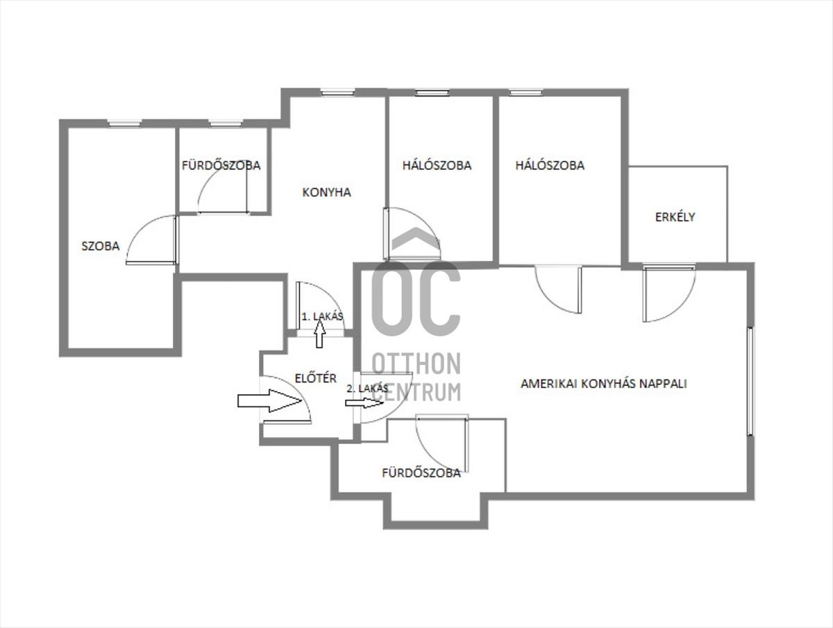 Egy 90m2 ingatlanból lett két lakás kialakítva, külön-külön, és egyben is bérelhető.