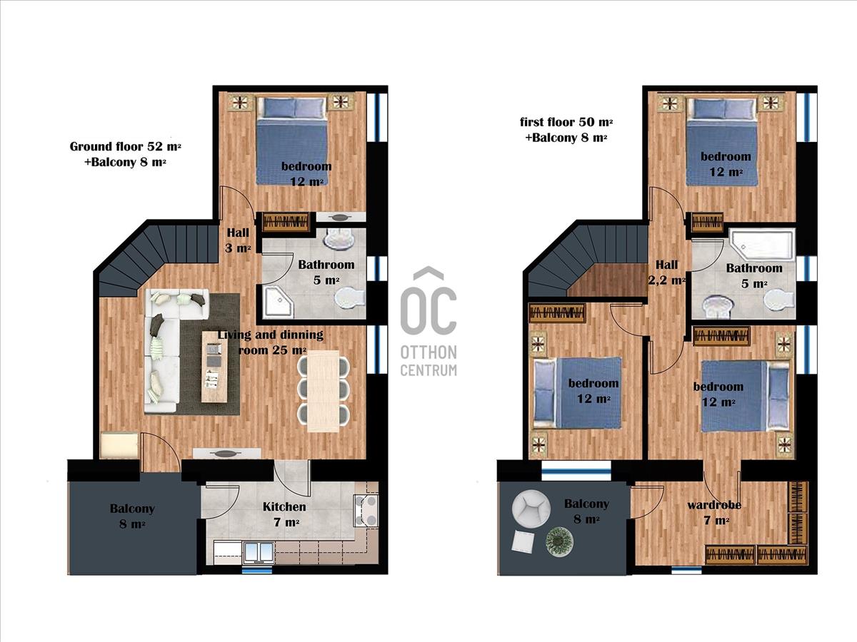 Belső kétszintes, 110m2-es, N+4 szobás, dupla komfort, terasz,...