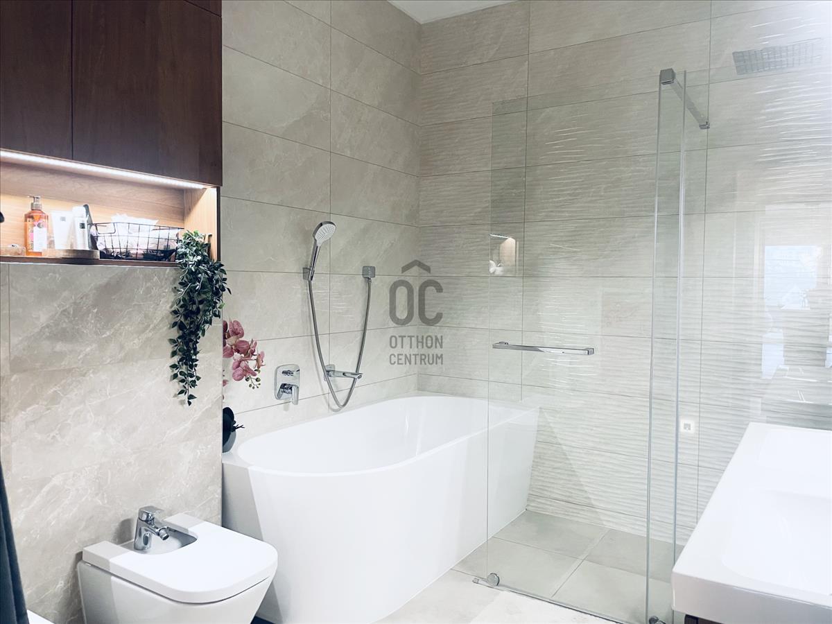 Az ingatlan modern hőszivattyús mennyezeti hűtés-fűtéssel rendelkezik, amely egész évben komfortos és energiatakarékos megoldást biztosít. a lakás egyedi tervezésű bútorokkal berendezett, prémium minőségű kivitelezéssel.