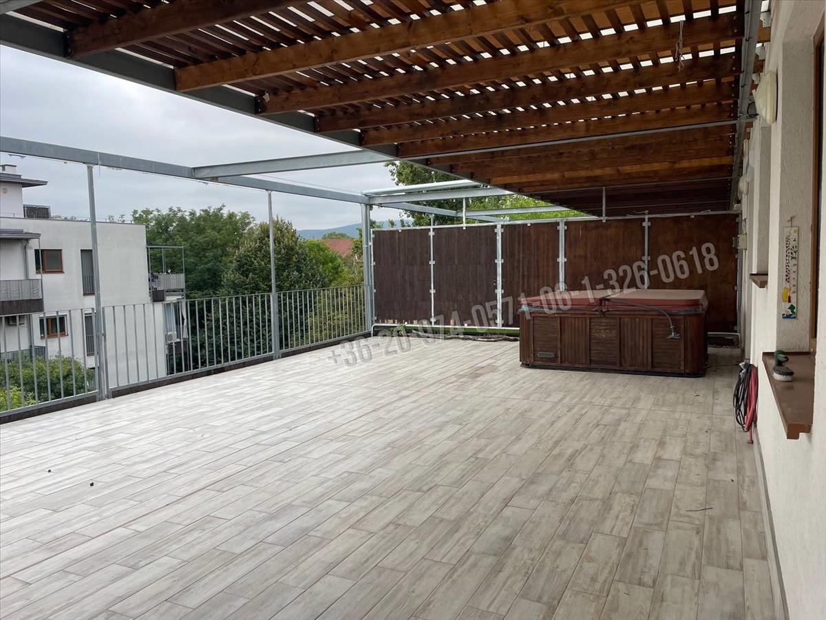 Frissen felújított 136 nm-es, luxus, belső kétszintes Penthouse lakás hatalmas déli fekvésű terasszal, gyönyörű panorámával minimum 6 hónapra kiadó.