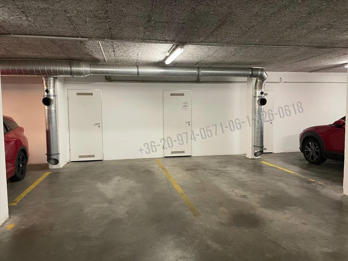 A lakáshoz két kocsibeálló tartozik, egy a teremgarázsban, egy az udvaron, illetve egy 8m2-es külön tárolóhelység is tartozik a lakáshoz, amely a teremgarázsban a kocsibeálló mellett van.