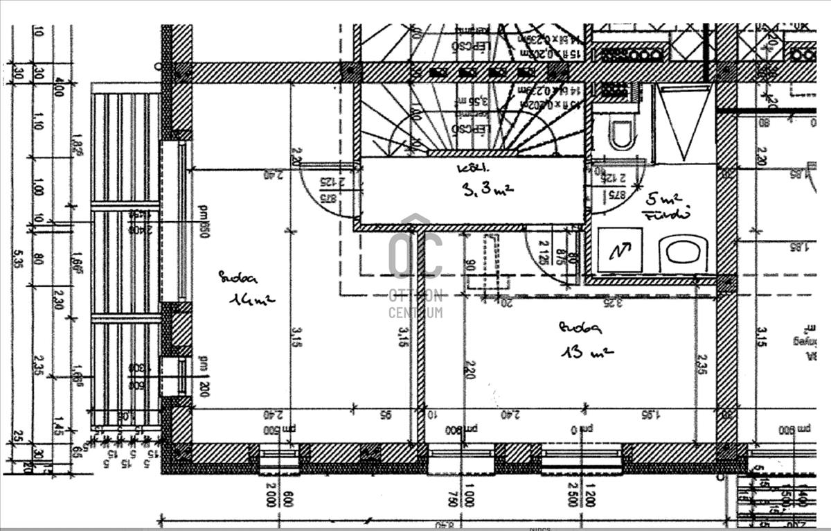 - felső szint: 2 db szoba(13+13m2), fürdőszoba(zuhany, wc, mosdó)