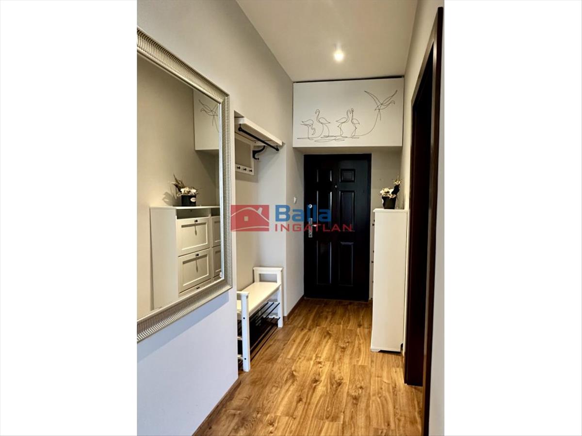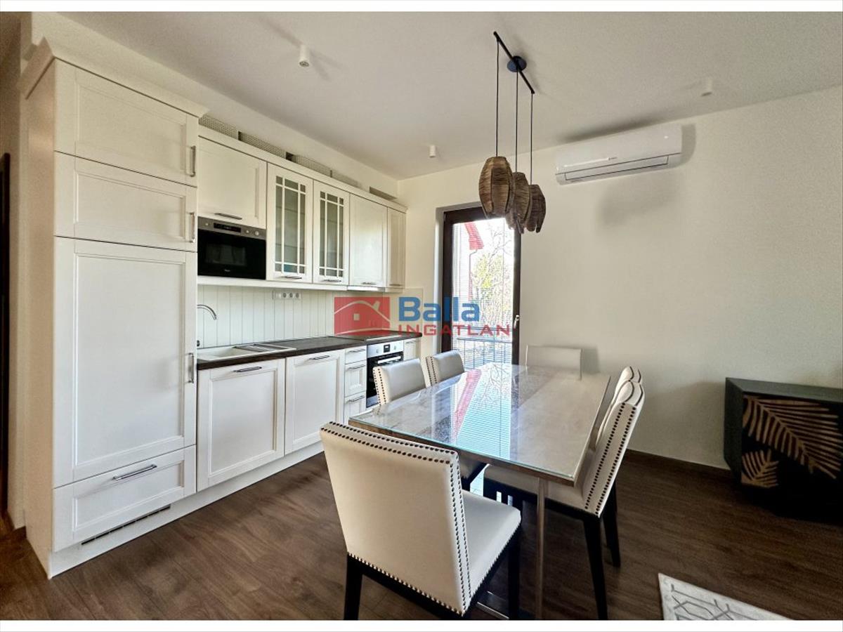 Az ingatlan jól átgondolt elosztású: a kertre néző, világos nappali étkezővel kapcsolódik, mellette két tágas hálószoba található, mindkettőben nagyméretű, beépített gardróbokkal. a lakás vadonatúj, gépesített Nobilia konyhával felszerelt, a hűtés–fűtés korszerű és gazdaságos geotermikus rendszerrel megoldott, a nyári komfortot légkondicionáló biztosítja. Mosógép nem tartozik a felszereltséghez.