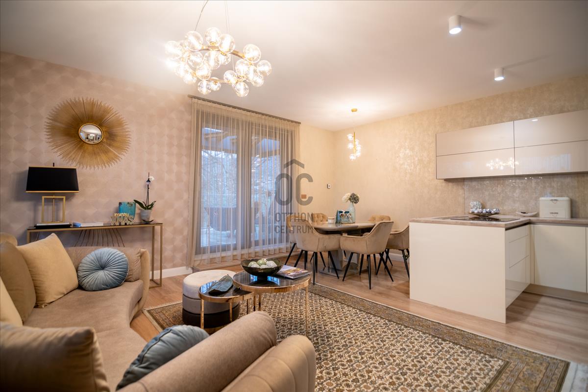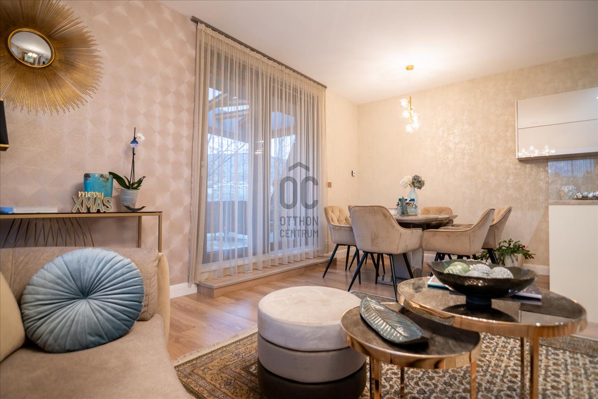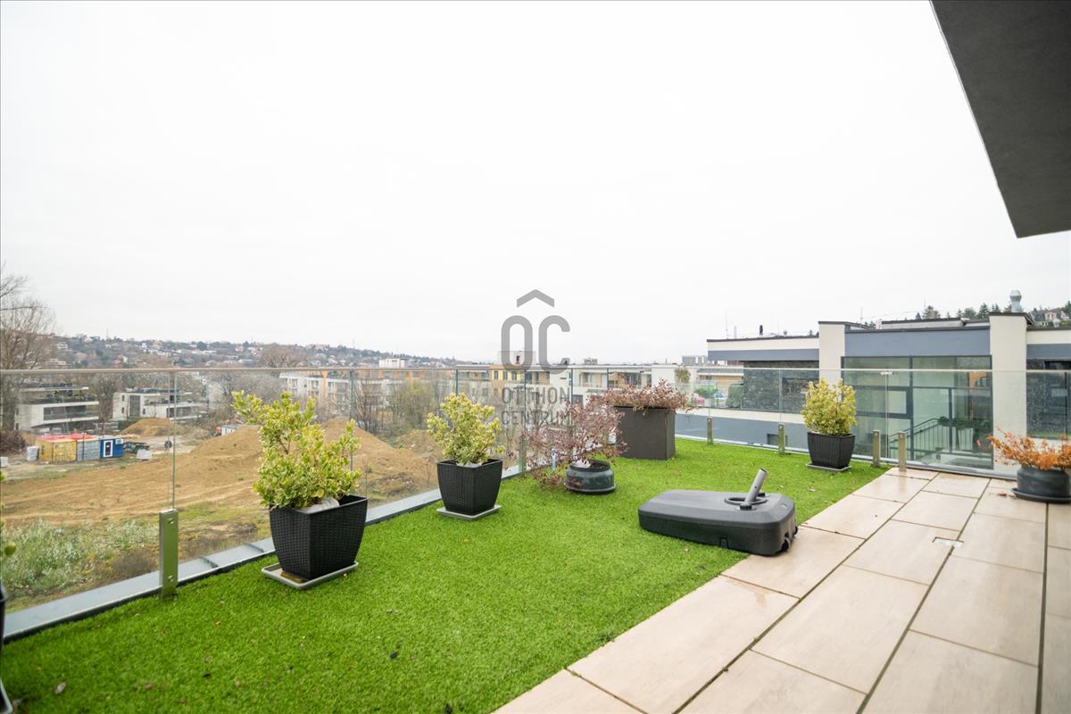 Harsánylejtőn, kis lakásszámú, minőségi társasházban kínálunk egy prémium, azonnal költözhető otthont.A nappali + 2 szobás lakás két hatalmas, összesen 60 m²-es panorámás terasszal várja új bérlőjét. a modern, jól felszerelt amerikai konyha, a gondosan kiválasztott burkolatok és a teljes bútorzat egyszerre praktikus és elegáns. a padlófűtés és a klíma egész évben kényelmes hőérzetet biztosít.