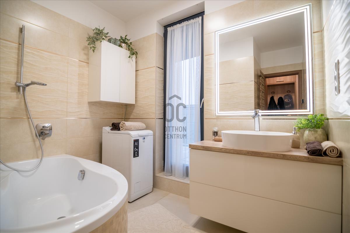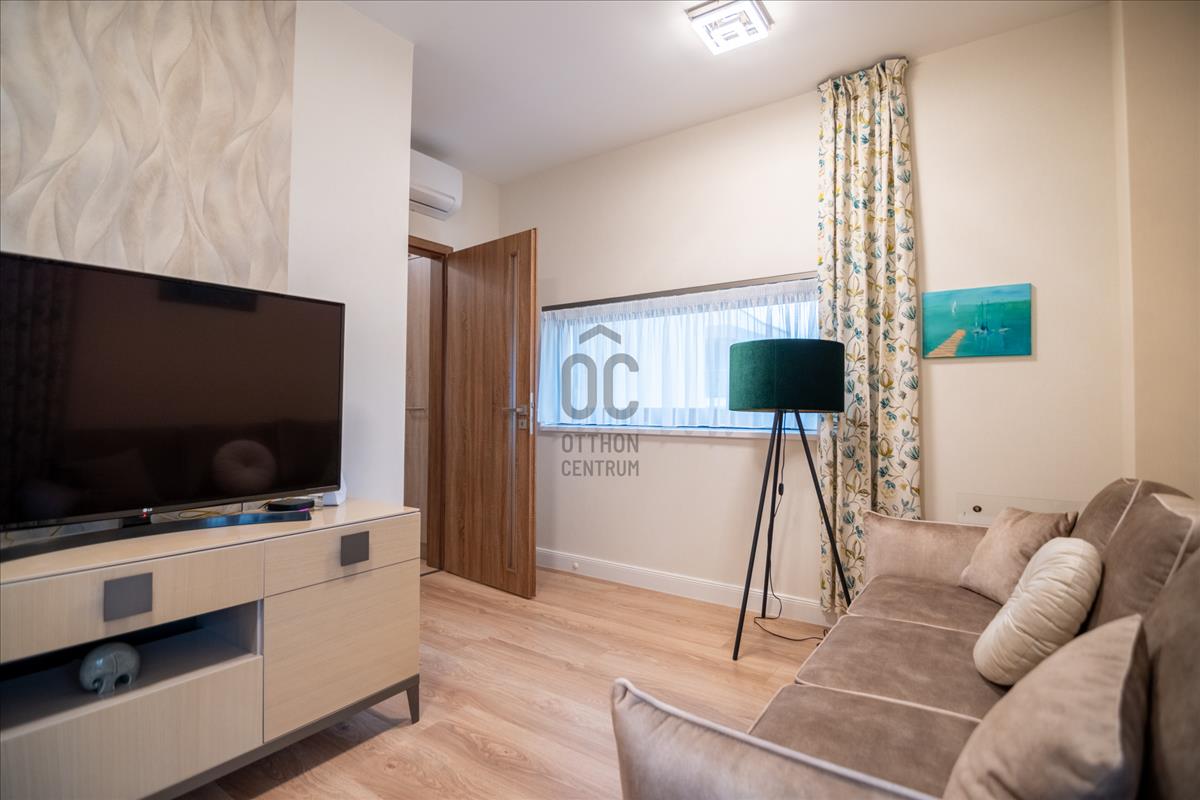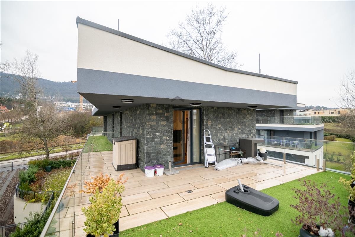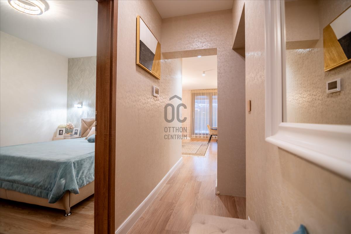 Harsánylejtőn, kis lakásszámú, minőségi társasházban kínálunk egy prémium, azonnal költözhető otthont.A nappali + 2 szobás lakás két hatalmas, összesen 60 m²-es panorámás terasszal várja új bérlőjét. a modern, jól felszerelt amerikai konyha, a gondosan kiválasztott burkolatok és a teljes bútorzat egyszerre praktikus és elegáns. a padlófűtés és a klíma egész évben kényelmes hőérzetet biztosít.