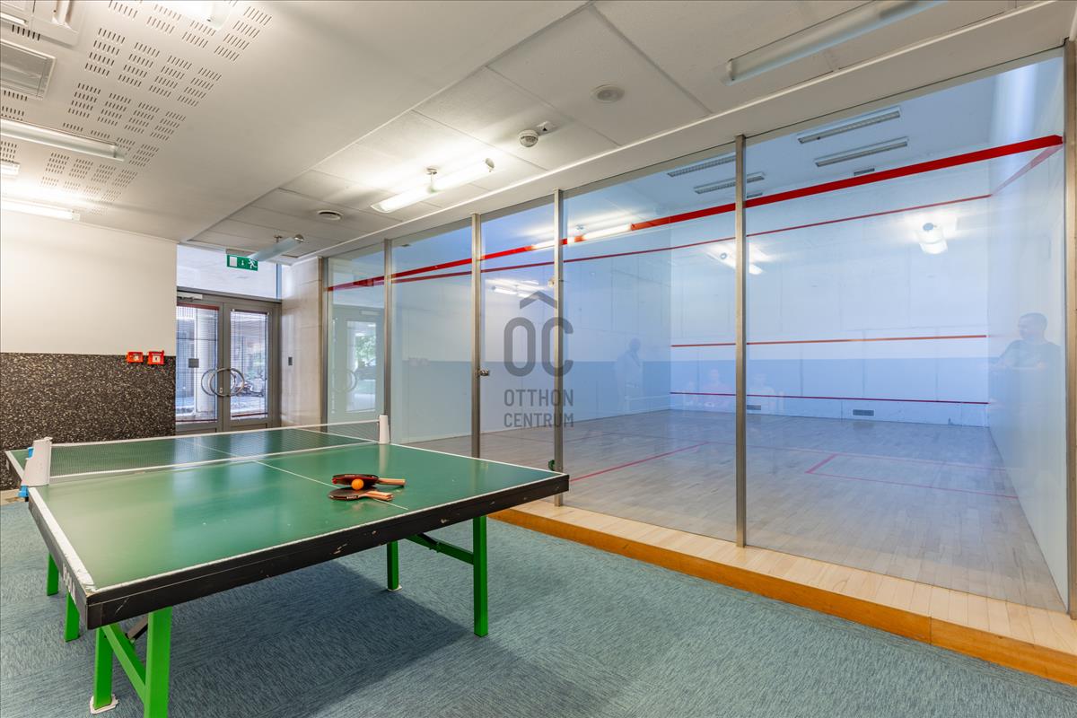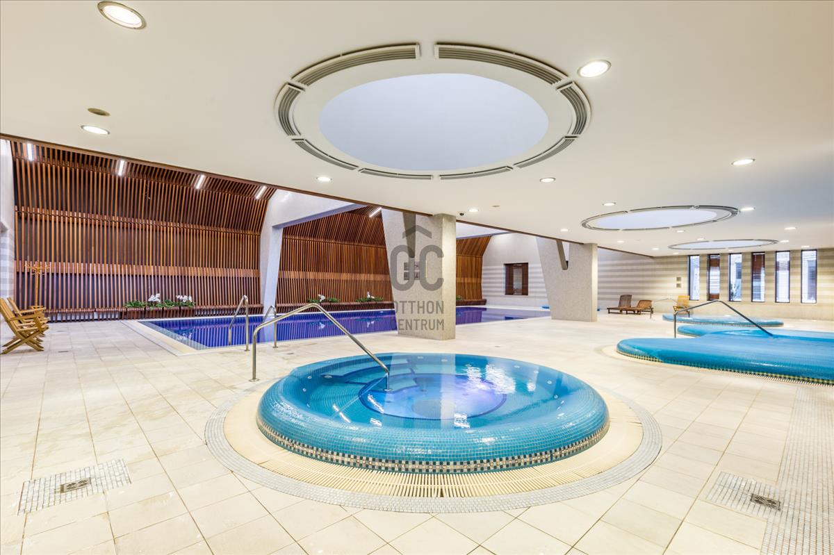 24 Órás portaszolgálat, uszoda, wellness, fitness részleg és könyvtárszoba is van a lakók számára.