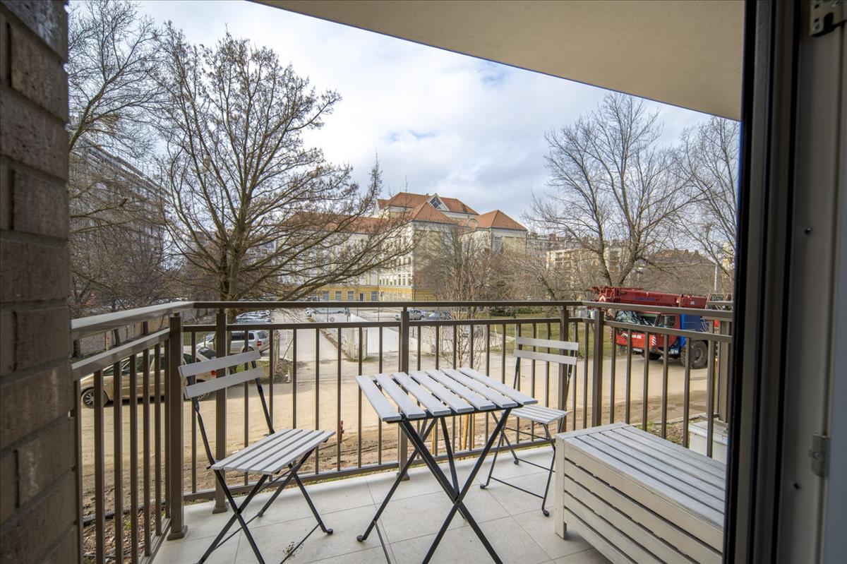 A 4 m²-es erkélyes lakás kiváló lokációval rendelkezik, a belváros gyorsan és könnyen elérhető tömegközlekedéssel.