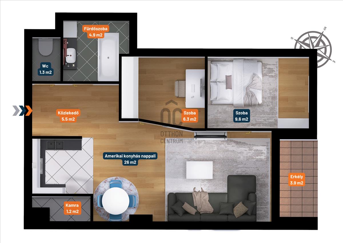 ➡️ Nappali és konyha egy légtérben, de funkcionálisan jól tagolható