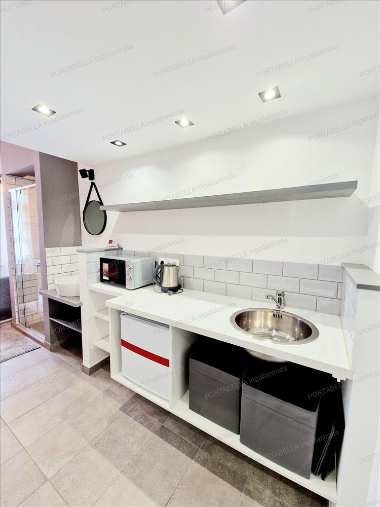 Az apartman 22 nm-es, bútorozott, teljesen felszerelt, saját zuhanyzóval, teakonyhával (mosogató, hűtő, mikró, vízforraló) és tanulósarokkal rendelkezik. a hálórész a fekvőgalérián került kialakításra.