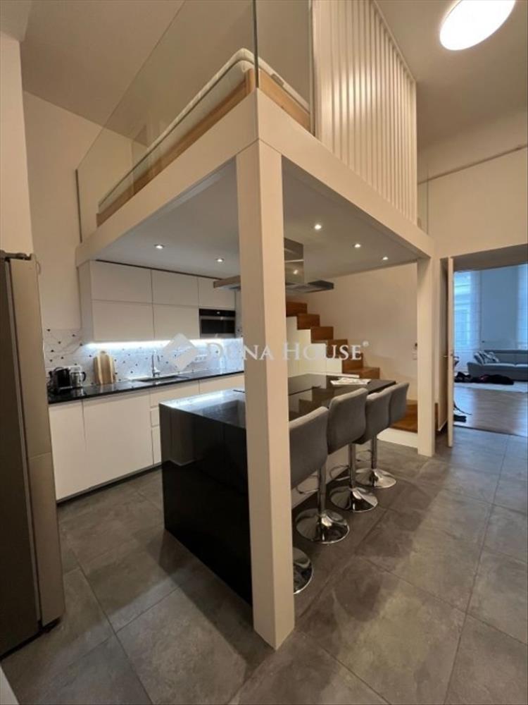 A lakás utcai kilátással rendelkezik, belső kialakítása modern, ötvözve a ház klasszicista jegyeivel. Három szoba kapott helyet: egy tágas nappali és két külön nyíló hálószoba, valamint két galéria, amelyek tovább növelik a térérzetet és a lakás praktikus használhatóságát. Két fürdőszoba biztosítja a kényelmet, a klímaberendezés pedig egész évben kellemes hőmérsékletet garantál. a hidegburkolatos helyeken padlófűtés van.