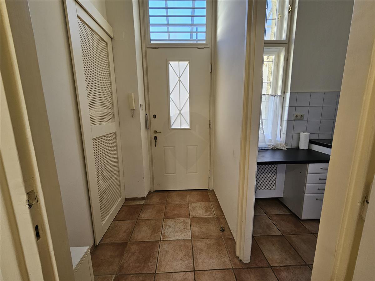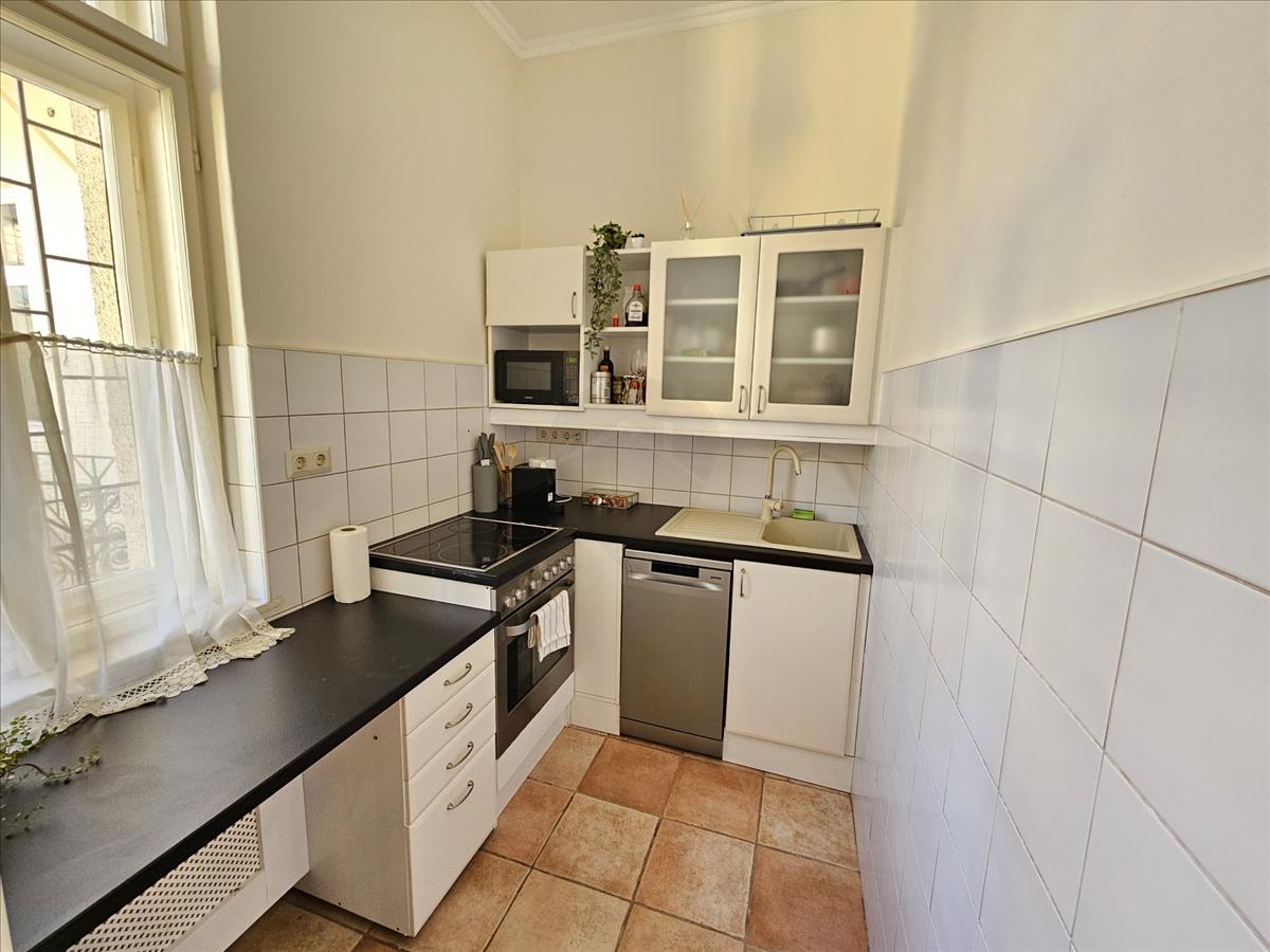 A lakásba belépve az előszobába érkezünk, ahol jobbra egy kamra kapott helyet, bal kéz felől pedig az ablakos, gépesített, mosogatógéppel felszerelt, kellemes méretű konyha nyílik. a konyha mellett találjuk az igényesen felújított, kádas fürdőszobát, a mosógéppel és a WCvel.