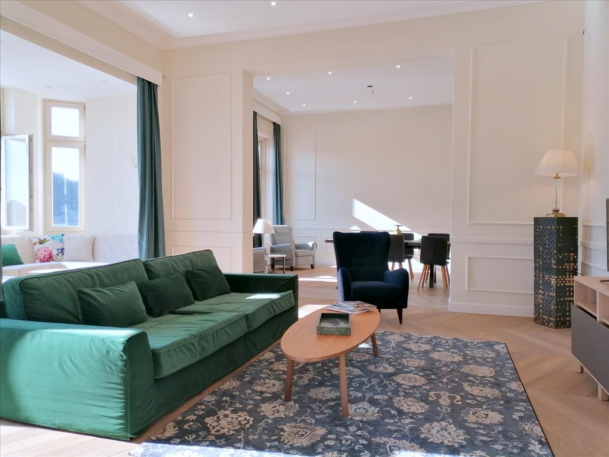 Néhány percre a fővám tér és a ferenciek terétől, a Belgrád rakparton, liftes ház 3. emeletén kiadó, egy gyönyörűen felújított, lakberendező által berendezett, 3 háló + nappalis luxus lakás.
