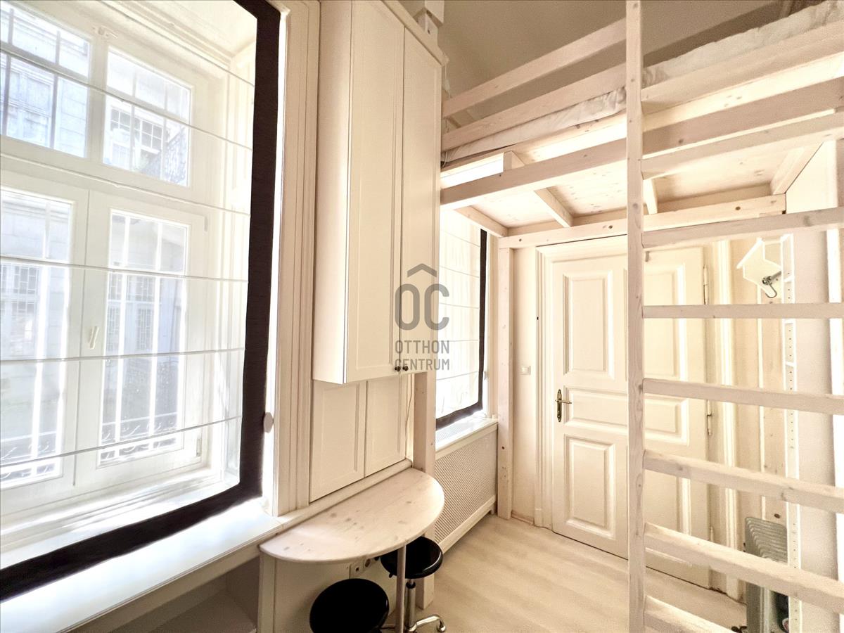Az apartman azonnal költözhető, Budapest egyik legkeresettebb kerületében, az v. kerület Bihari Jánor utcájában található, és kiváló elosztással rendelkezik. a lakás teljeskörű felújításon esett át 2015-ben, amely magában foglalta az amerikai konyhás nappali kialakítását, a padló felcsiszolását, az ablak cseréket, az ajtó felújításokat, a fűtéskorszerűsítést, a plusz kamra/főzőfülke elhelyezését, és a galériás ágy kialakítását is. a lakás a képek elkészülése óta már egy tisztasági festésen is túl van. Az impozáns házban elhelyezkedő polgári lakás elegáns és letisztult kialakítású, nagy belmagassággal és tökéletes fényviszonyokkal rendelkezik.