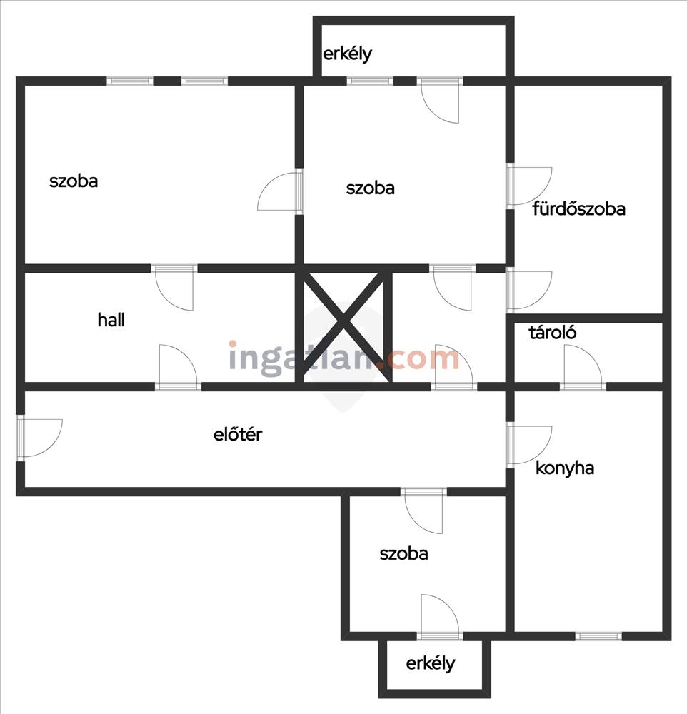 3 különnyíló szoba + tágas hall + külön konyha + fürdő + tároló