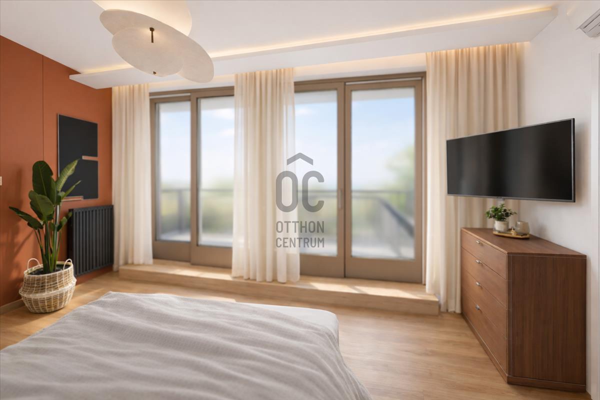 A felső szinten kapott helyet a fő hálószoba, amely prémium berendezésével valódi lakosztály hangulatot teremt. Ezen a szinten található egy zuhanyzós fürdőszoba és egy tágas közlekedő is. a szint igazi különlegessége a 36 m²-es privát, panorámás terasz, ahonnan lenyűgöző kilátás nyílik a Gellért-hegyre és a Szabadság-szoborra. Ideális helyszín baráti összejövetelekhez, családi eseményekhez vagy akár reprezentatív fogadásokhoz.