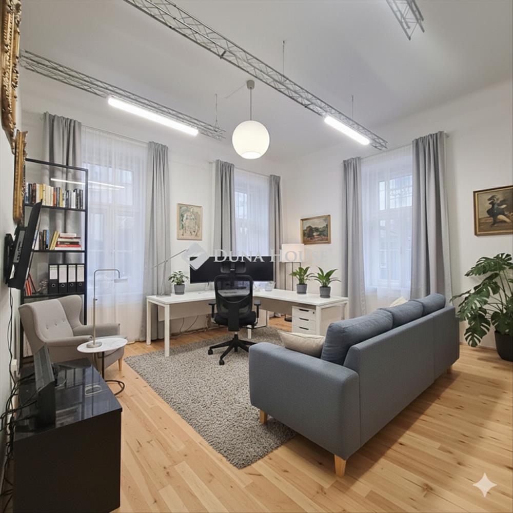 Az elrendezés biztosítja a helyiségek közötti szeparáltságot, így az ingatlan alkalmas több fős irodai tevékenységre, magánrendelőnek vagy lakóingatlannak egyaránt.