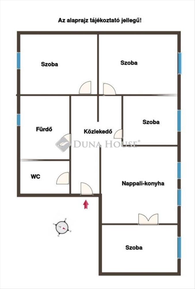 Az ingatlan optimális alaprajzi elrendezéssel rendelkezik: a központi teret a tágas, amerikai konyhás nappali alkotja, mind a négy szoba külön nyíló.