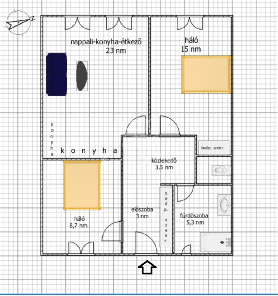 Bútorozott, gépesített (hűtőgép, mosógép, sütő, főzőlap, mikró sütő, TV-k, 3 db klíma készülék).