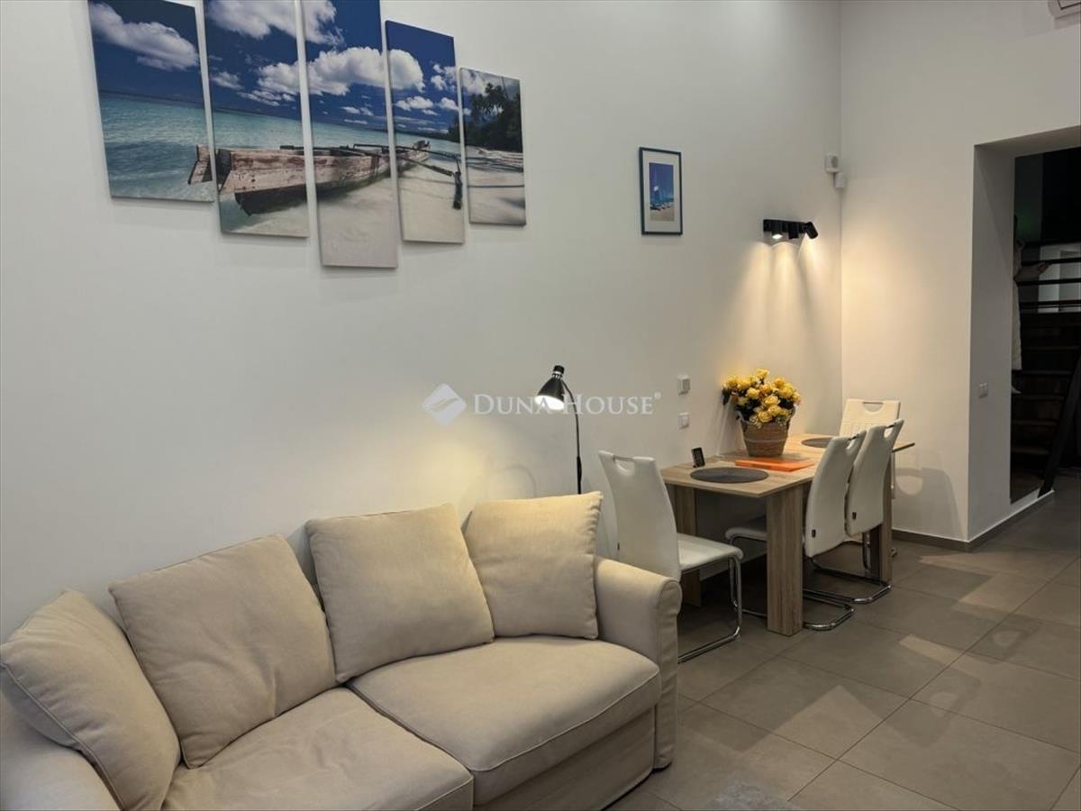 Kiadó egy teljesen berendezett, 2021-ben teljes körűen felújított apartman. Az utcára néző, háromrétegű speciális üvegezésű ablakok kiváló hangszigetelést biztosítanak, garantálva a nyugodt légkört. a lakás modern, wifin keresztül vezérelhető elektromos padlófűtéssel rendelkezik, amely három különálló fűtőkörre van osztva. További kényelmet nyújt a nappaliban és a galériás hálórészben elhelyezett két nagyteljesítményű inverteres légkondicionáló. Gázszolgáltatás nincs a lakásban. a hálószoba a galérián kapott helyet, amely 9 m²-es, 210 cm-es belmagassággal rendelkezik, és egy „king-” méretű franciaágy biztosítja a kényelmet. a nappali tágas, 20 m²-es, ahol egy kihúzható kanapé (időszakosan két személy számára alkalmas), egy nagy, háromrészes tolóajtós szekrény, valamint egy nagy méretű, tanulásra és home office-ra is alkalmas étkezőasztal található. Emellett egy 40”-os led tv, két vezetékes internetcsatlakozási lehetőség és több helyről kapcsolható mennyezeti, illetve led világítás is a nappali része. Az ablakok „black-out” sötétítő függönnyel vannak felszerelve. a konyha kiválóan felszerelt: négyzónás elektromos főzőlap, beépített elektromos katalitikus sütő, mosogatógép, mosógép, nagy méretű kombinált hűtőszekrény, mikrohullámú sütő, kenyérpirító és Nescafé kávéfőző áll rendelkezésre. a főzéshez szükséges eszközök, valamint négy személy számára komplett étkészlet is megtalálható. a konyhapultot LED-sor világítja meg. a fürdőszoba külön fűtéskörrel rendelkezik, törölközőszárítós radiátorral, esőztetős zuhanyzóval és WC-vel. Az apartman optikai szálas internetszolgáltatással, 156 csatornás TV-előfizetéssel (digi), erős routerrel biztosított wifivel, valamint riasztórendszerrel van felszerelve. Az ingatlan alapterülete 48 m². Hitel.hu - Hasonlítsa össze a bankok lakáshitel ajánlatait