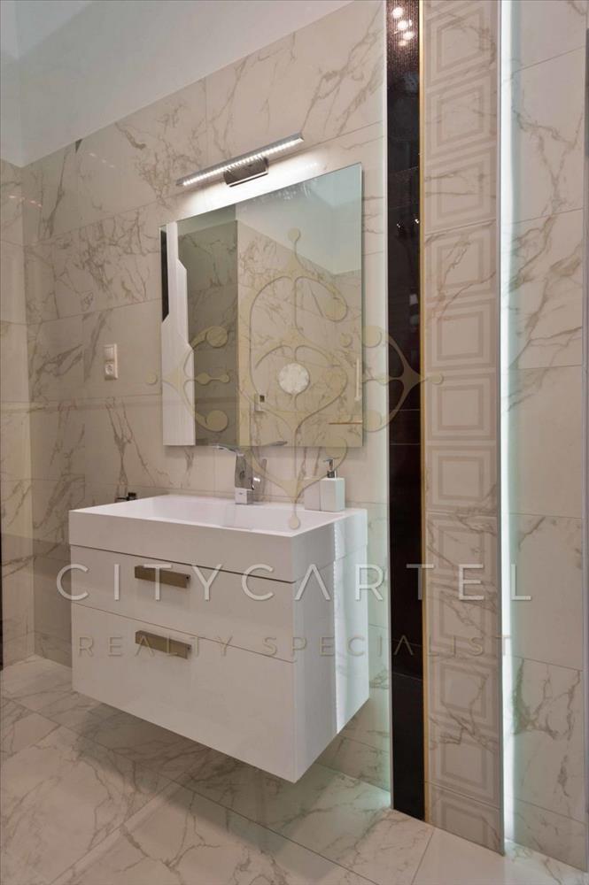 Az egyedi belsőépítészeti megoldások és a gondosan kiválasztott prémium anyagok harmonikus elegyet alkotnak. a led világítással kombinált faldekorációk és a kézzel készített gipsz mennyezeti díszítések különleges atmoszférát teremtenek. a lakás enteriőrjét olyan neves dizájnmárkák inspirálták, mint a Kare, Bo Concept és Einholtz.