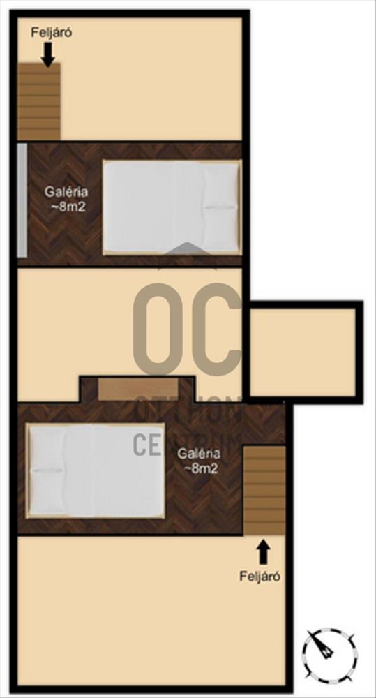 - 48m2 - 2 szoba + 2 fekvő galéria (1, 65m és 1, 36m belmagassággal)